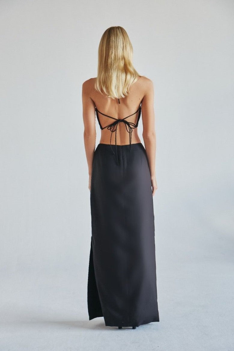 A LONG SKIRT WITH A LOW WAIST AND SLIT ON THE SIDE